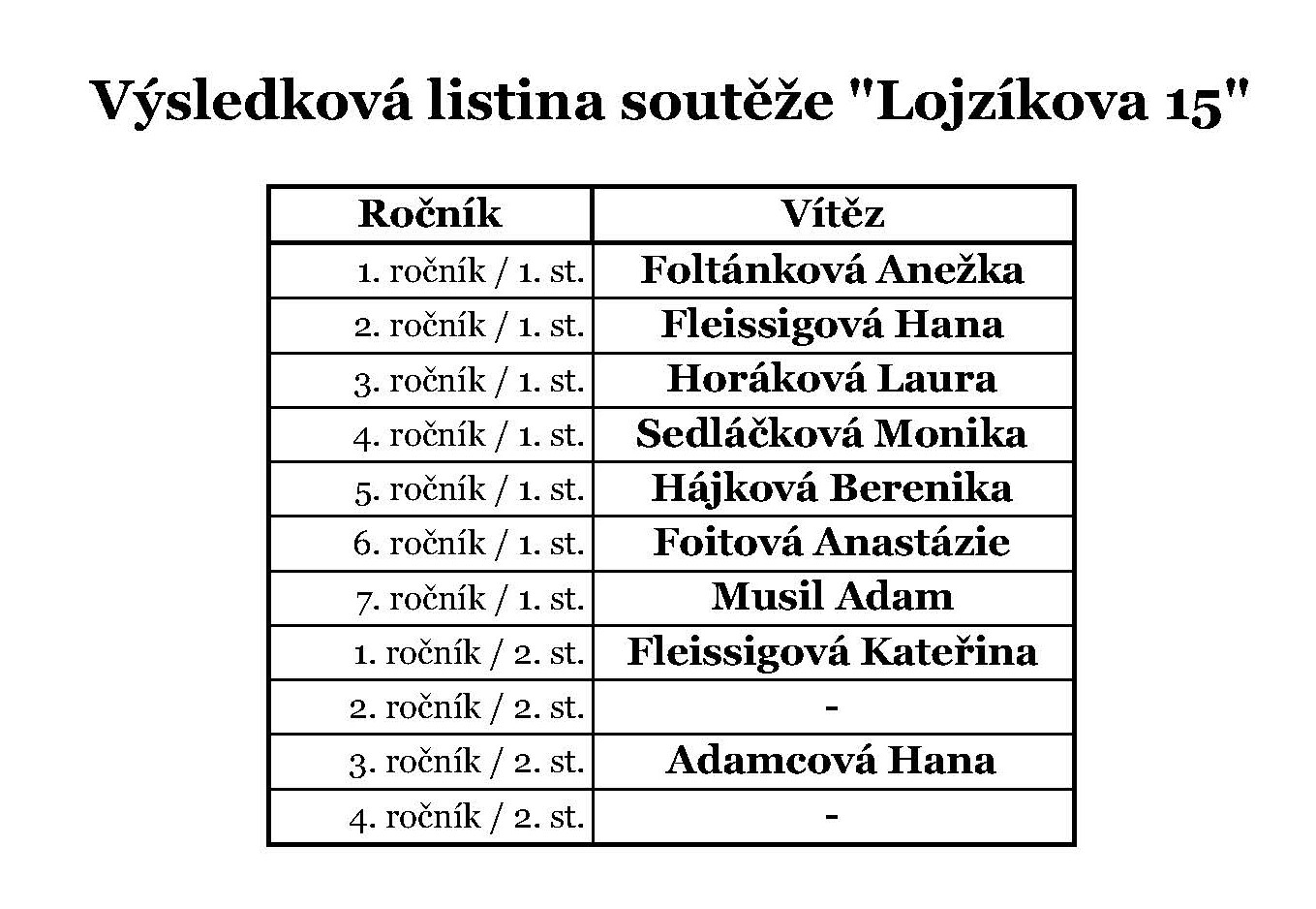 V naší ZUŠ právě probíhá nová soutěž "Lojzíkova 15", jež byla nabídnuta žákům všech ročníků studijního zaměření hra na klavír a hra na EKN.