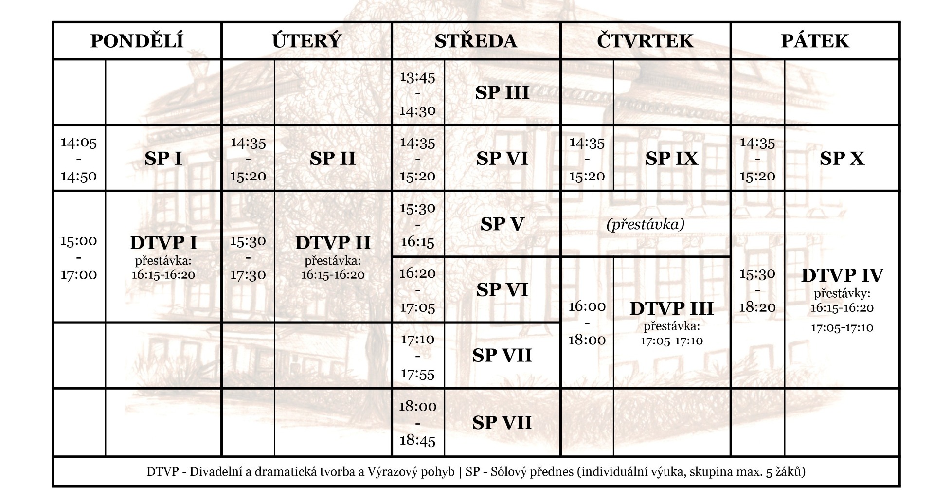 Rozvrh pro školní rok 2025/2026